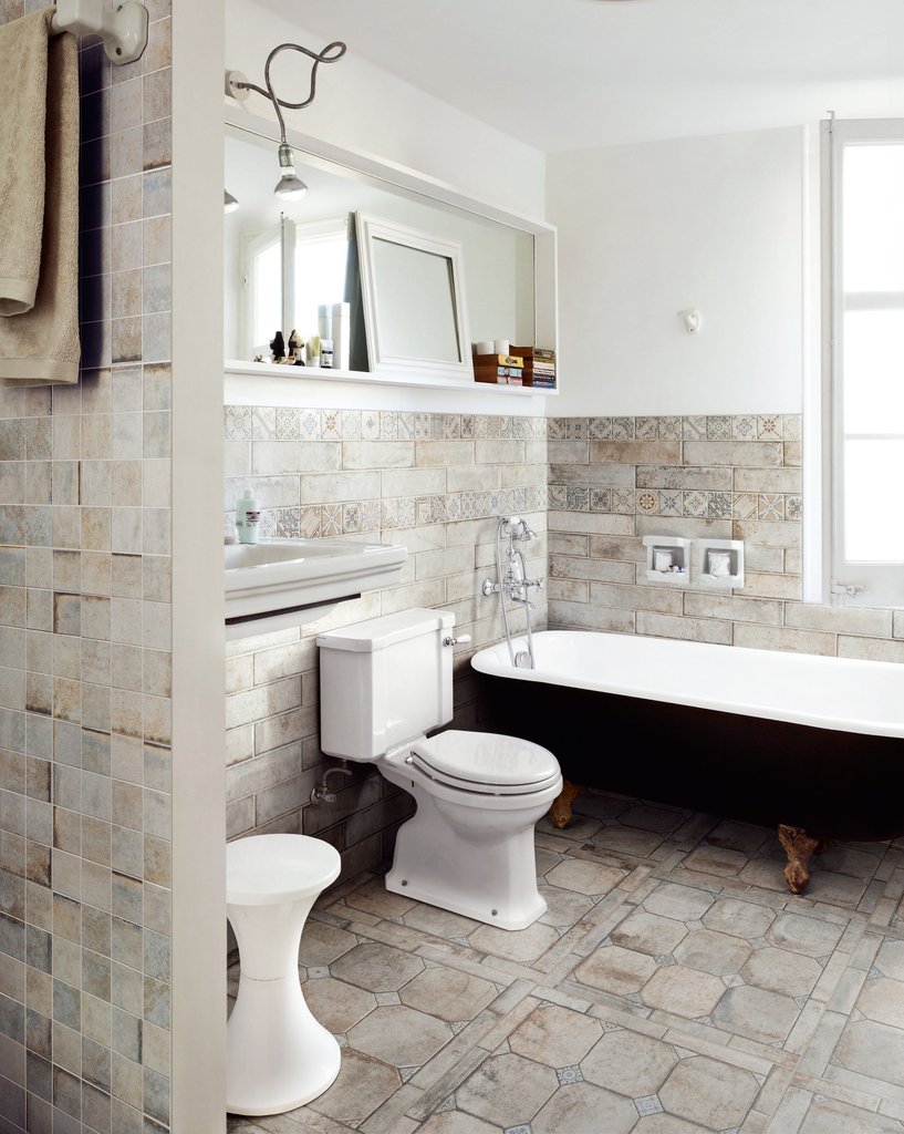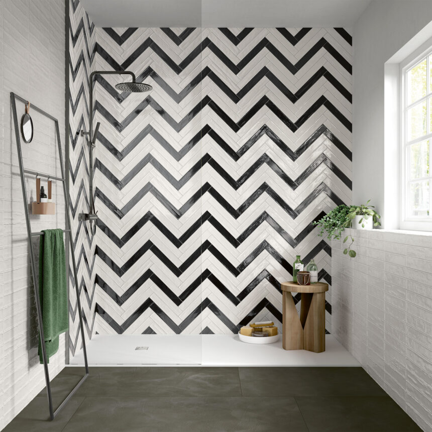 Helle Fliesen ermöglichen es im Badezimmer mit der Einrichtung Kontraste zu erzielen. Der Trend mit schwarzen Armaturen und Sanitäreinrichtungen zu arbeiten wird durch helle Fliesen unterstützt. Das Ergebnis: ein modernes freundliches Bad