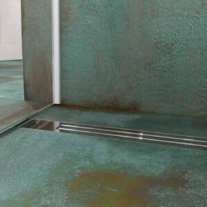 Fugenlose Duschen liegen im Trend, auch unsere Kunden wünschen sich dies immer häufiger. Zu beachten ist aber, dass das Handling dieser Platten schwierig werden kann. Gerade bei Renovierung von bestehenden Bädern sollte deshalb schon im Vorfeld überprüft werden ob man mit den großen Fliesen ins Badezimmer gelangt. Es gibt auch unterschiedlichste Motive bei unseren XXL Formaten. Neben der hier verwendeten Metalloptik gibt es alle Optiken auch in XXL, ebenfalls die momentan sehr aktuellen Blumen- bzw. Naturdekore. Lassen Sie sich beraten, wir helfen gerne bei der Wahl der besten Variante.