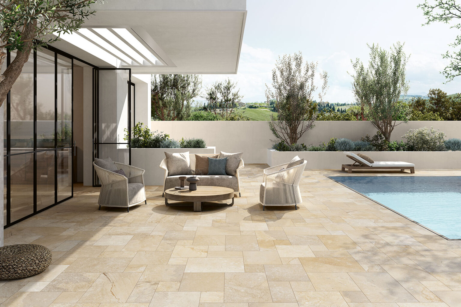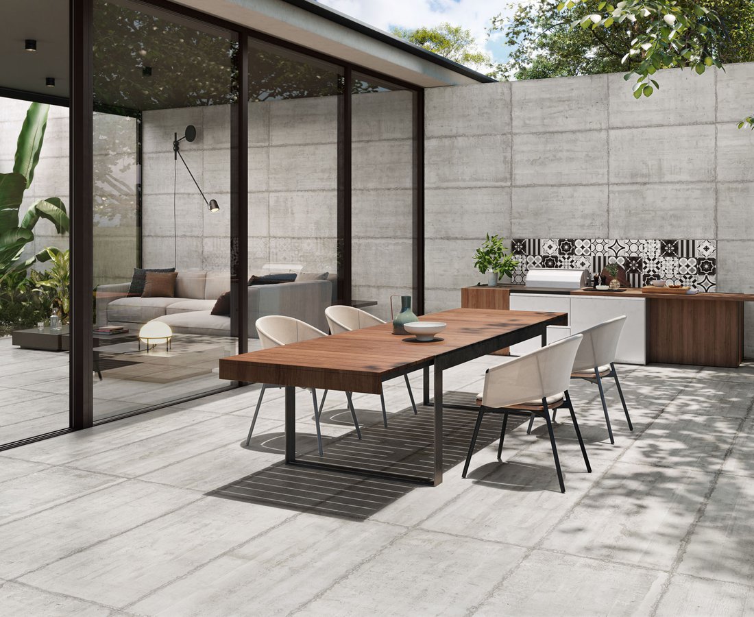 Eine Frage die man sich bei der Wahl der Terrassenfliesen stellen sollte ist: Möchte ich Outdoor einen anderen Look als Indoor haben oder soll mein Wohnraum optisch erweitert werden?