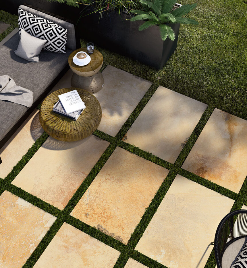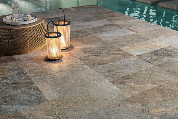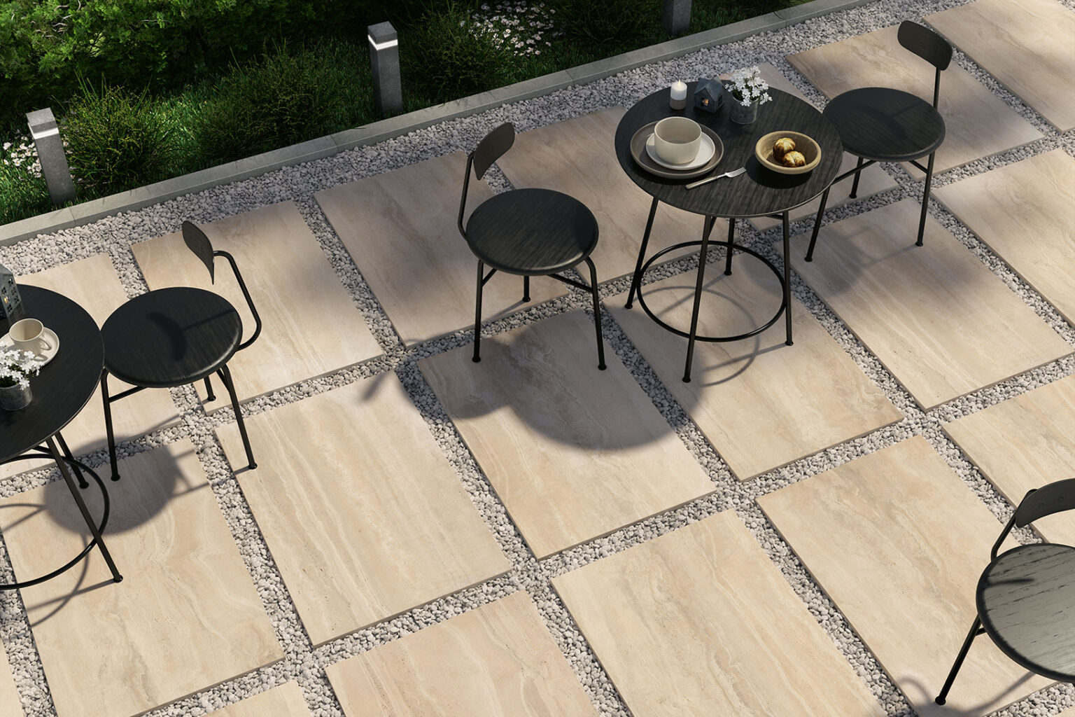 Der Vorteil der robusten Platten aus Feinsteinzeug liegt auch in der flexiblen Art der Verlegung.